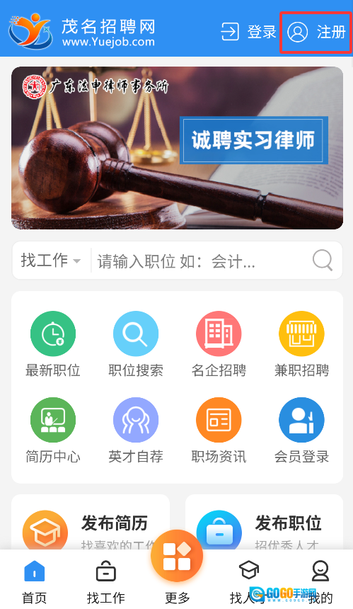 1、注册登录:后完成账号注册,填写基础信息并上传简历,即可开启求职之旅。