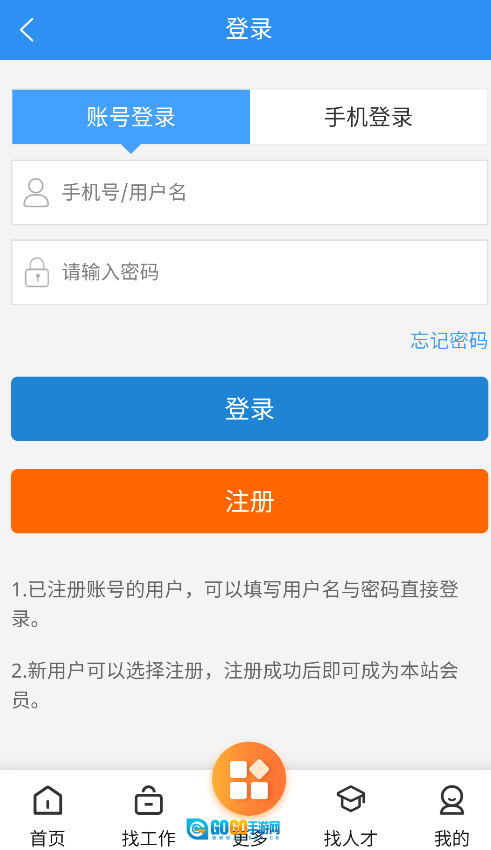 3、返回登录页面,使用刚注册的账号密码即可登录,开启求职/招聘服务。