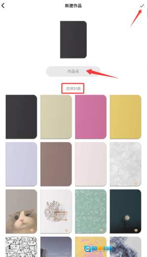 2、在封面选择界面,可从本地相册上传或使用模板,确定后进入作品命名阶段。