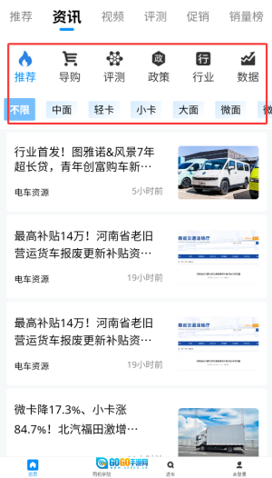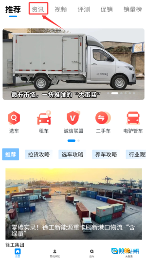 1、打开电车资源平台,在首页的导航栏中点击“资讯”板块,该板块每日都会更新新能源汽车领域的最新动态。