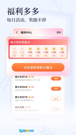 3、独创"福利中心"模块,通过每日签到、阅读时长兑换等方式获取阅读券,实现真正意义上的免费畅读。