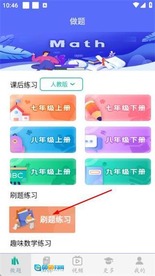 1、在答题页面点击刷题练习选项,即可进入数学题目练习页面。