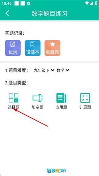2、在数学题目练习页面挑选题目类型,随后进入答题练习界面。