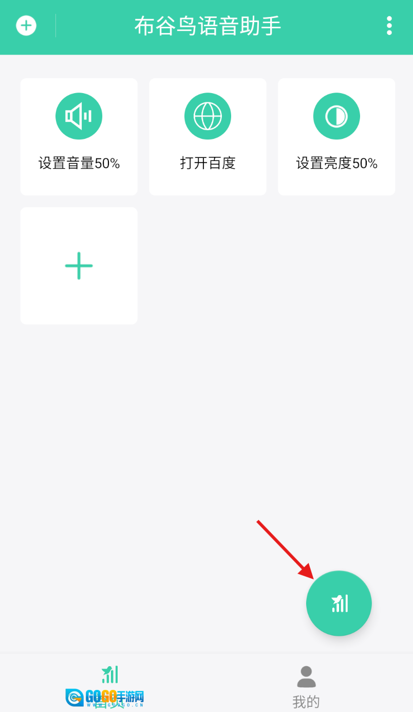 1、打开布谷鸟语音助手应用,在首页找到并点击软件专属标志。