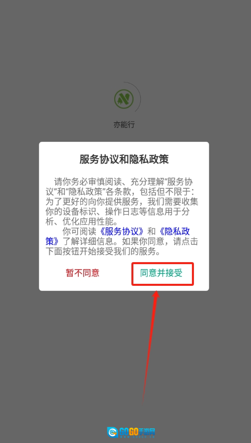 1、安装好亦能行软件,首次打开时在弹出页面点击 “同意软件协议” 进入。