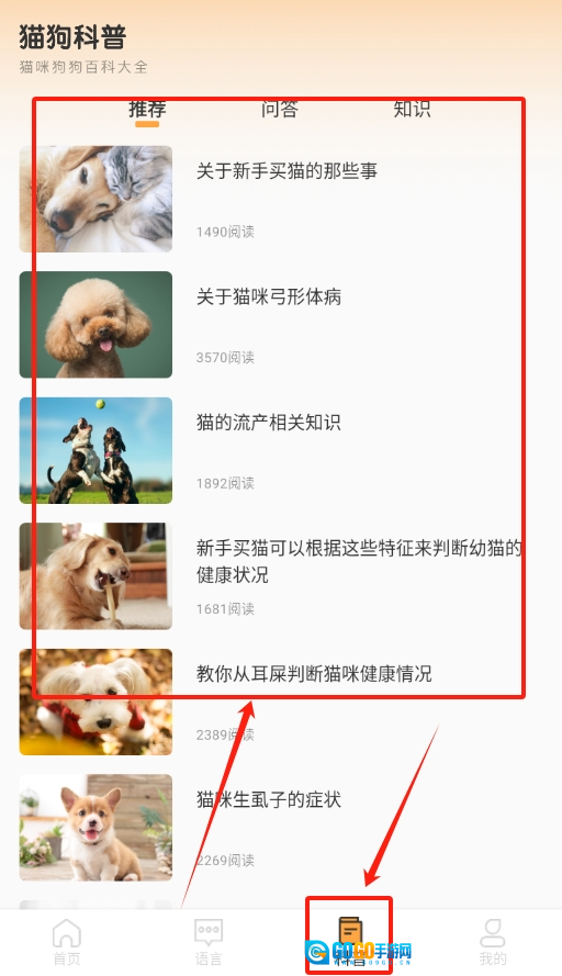 3、继续浏览首页,还有 “猫狗科普” 专区,带你了解宠物习性、健康等各种小知识。