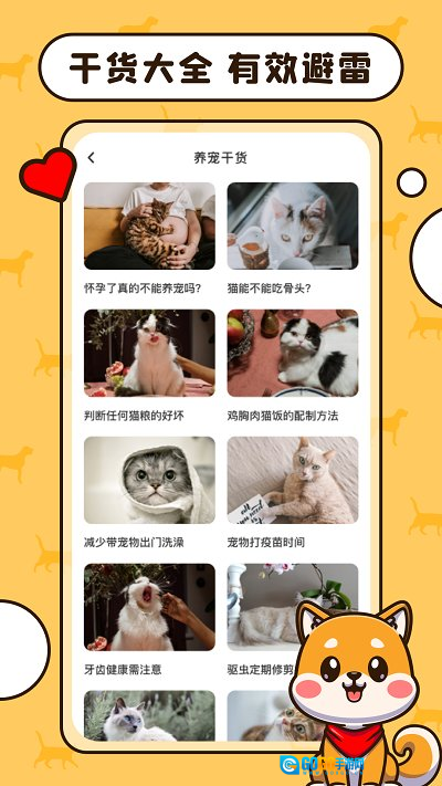 3、养宠干货助力新手科学喂养宠物:为初次养宠者提供科学喂养干货,帮助快速掌握正确养宠方法。