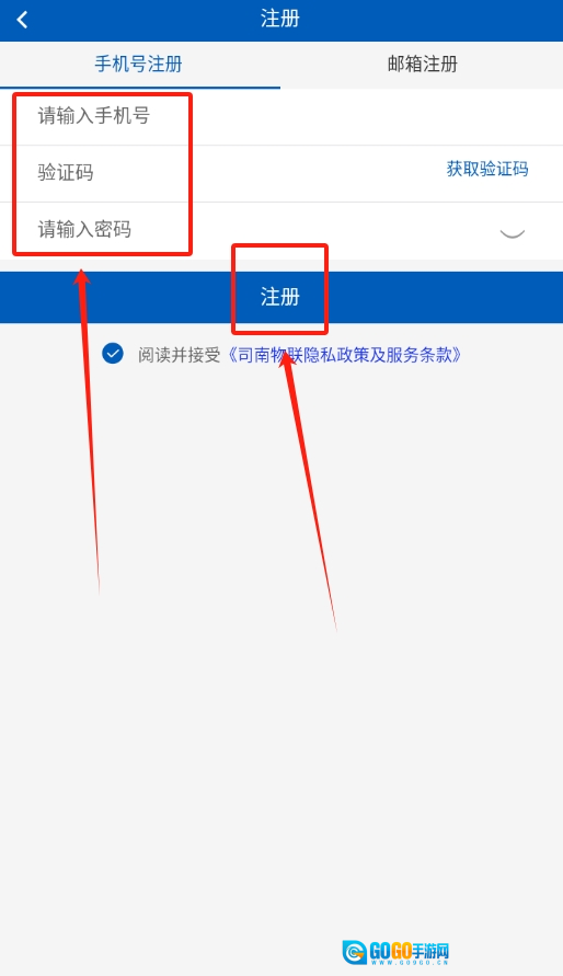3、新用户注册时输入手机号获取验证码,填写验证码后设置密码即可完成账号注册流程。