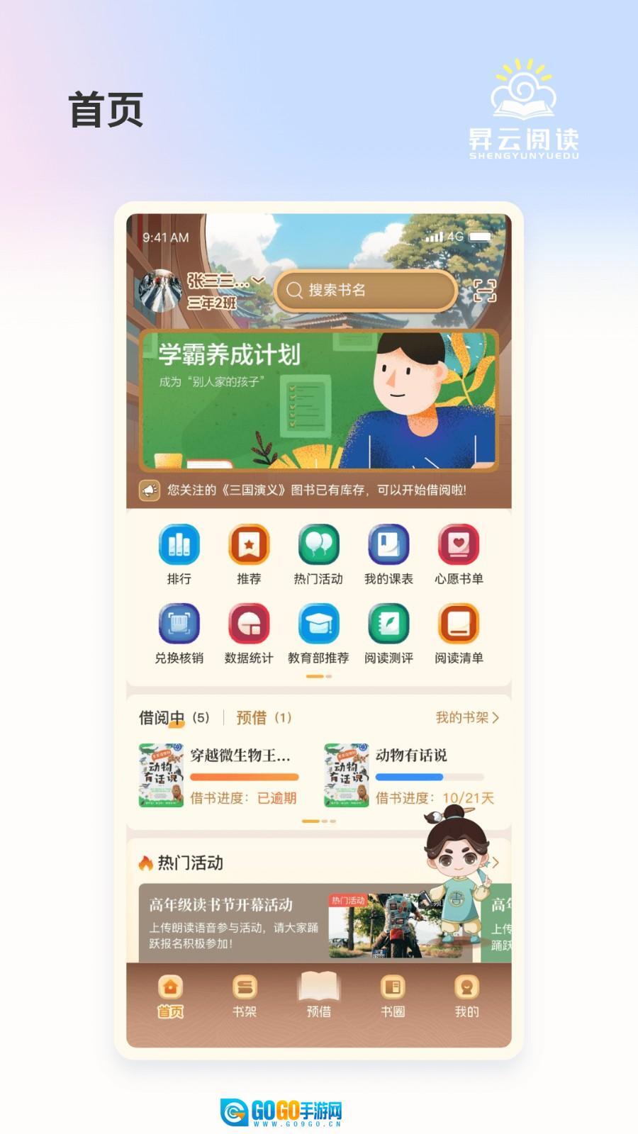 1、作为创新型的线上图书借阅平台,该应用整合了超过50万册正版图书资源,涵盖教材教辅、文学名著等30余个分类。