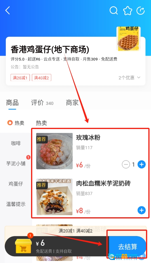 3、看到想吃的菜品就点旁边的加号选数量,确认后点击结算等送餐。
