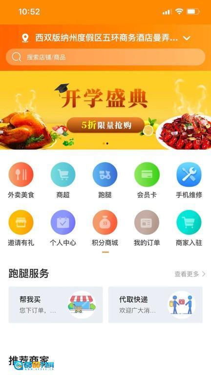 1、打开云点校园软件,首页众多选项里直接点击 “外卖美食” 板块。