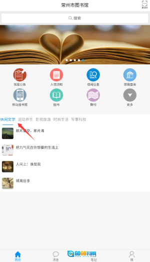 1、启动常州图书馆后,在首页分类导航栏选择"文学作品"栏目,这里汇集各类小说资源。