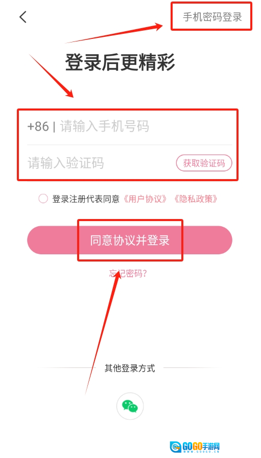 2、若想通过手机号登录,直接输入手机号并填写收到的验证码即可进入。