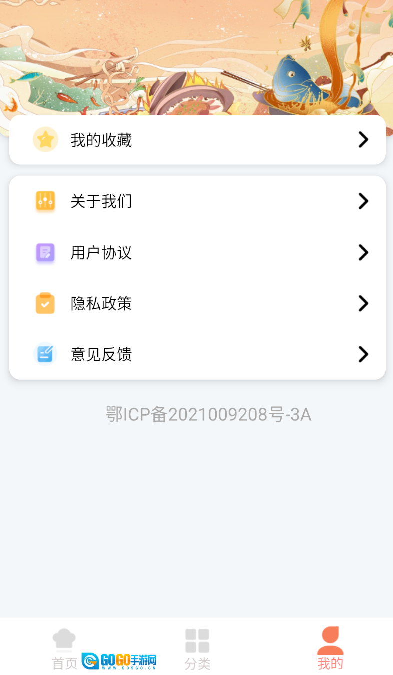3、收藏管理:可以将自己喜爱的菜谱进行分类收藏整理,便于在任何时候随时查看制作。