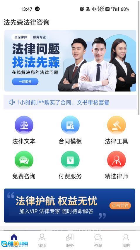 法先森是一个集法律咨询、法律维权、律师对接等功能于一体的专业法律服务平台。平台不仅提供海量法律科普内容,方便用户随时快速查询各类法律资料,助力大家掌握更多法律知识,从而学会用法律武器维护自身合法权益,推动全民懂法、用法的目标实现;还配备了在线律师团队,用户可以在这里与律师高效沟通,及时咨询法律问题并获得专业解答,也能通过平台筛选匹配更合适的优秀律师,让各类法律案件的处理变得轻松高效。有需要的用户不妨前来体验!