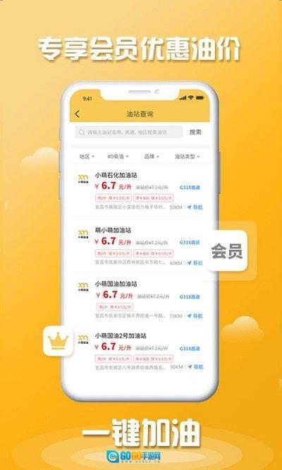 3、超值会员优惠加油服务模式:与众多加油站达成合作,用户专享会员优惠价格,一键导航直达站点,加油省钱又便捷。