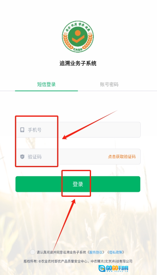 2、在登录页面输入自己的手机号,然后获取并输入验证码,完成登录操作。