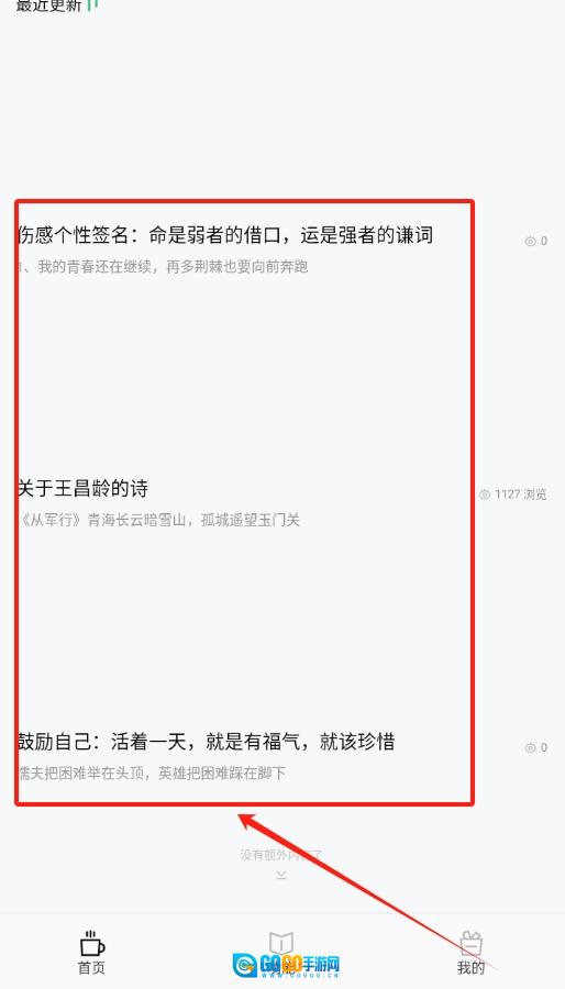2、手指在屏幕上往下滑一滑,还能刷到最新更新的文章,总能发现新鲜又优质的内容。