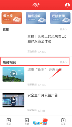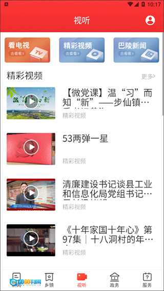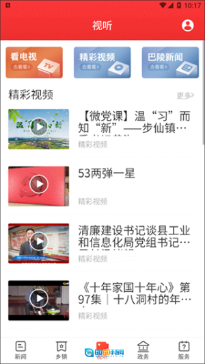 1、启动新巴陵新闻后,在首页导航栏选择"视听"栏目,这里汇聚各类视频新闻报道。