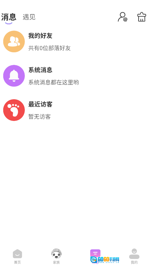 3、通过"消息中心"管理所有聊天记录,支持按家族、好友分类查看历史消息。