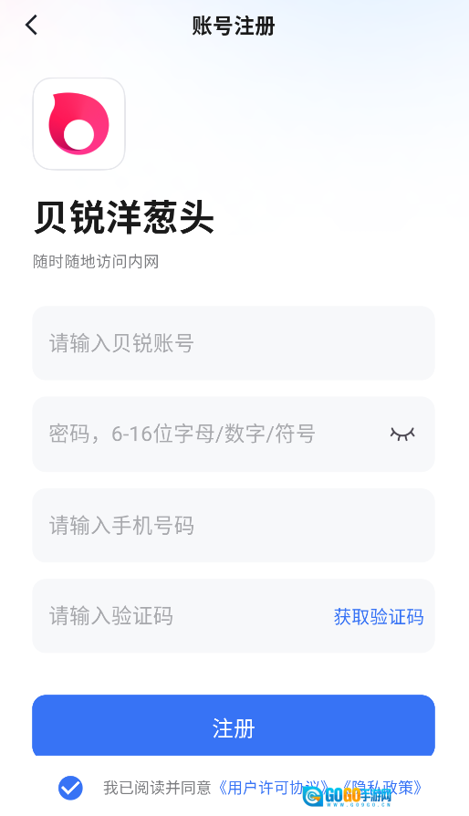 1、启动后,点击登录页面的"立即注册"按钮,进入账号创建流程。