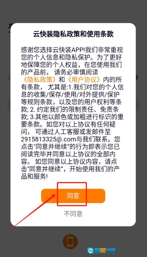 2、软件一打开,就会跳出软件协议页面,仔细瞅瞅没啥问题,直接点击同意,才能继续使用软件 。