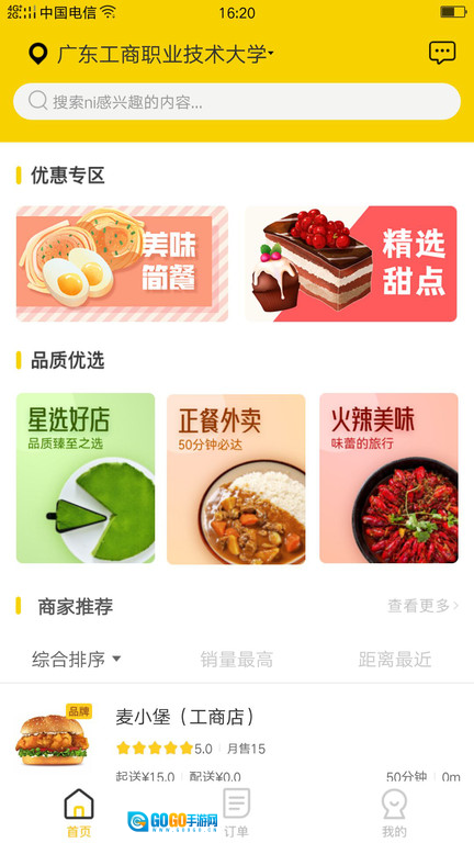 2、首页分类浏览选择美食:打开软件后通过首页分类浏览,精准选择自己喜欢的外卖美食品类。