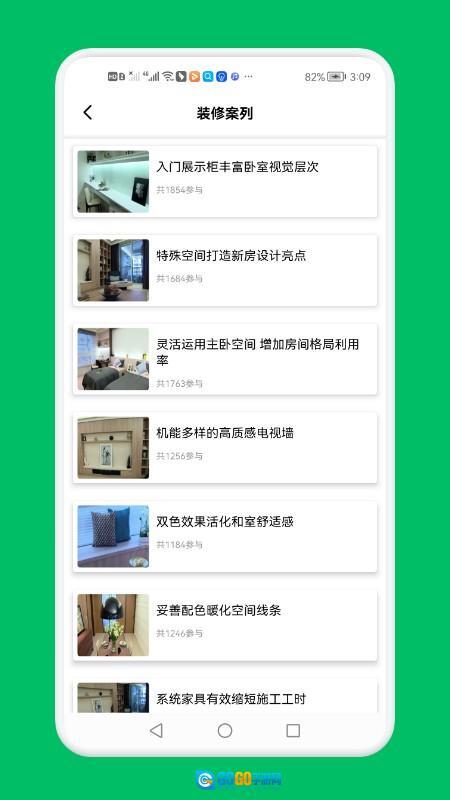 1、安装装修设计屋后,打开软件浏览首页各类装修风格案例,从中寻找适合的设计灵感。