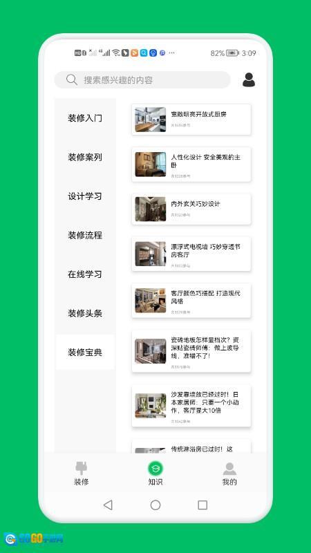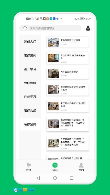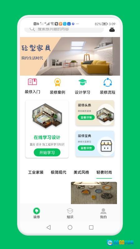 2、系统介绍全面的装修知识,带领用户深入了解装修风格、设计理念等内容,有效激发设计灵感打造满意效果。