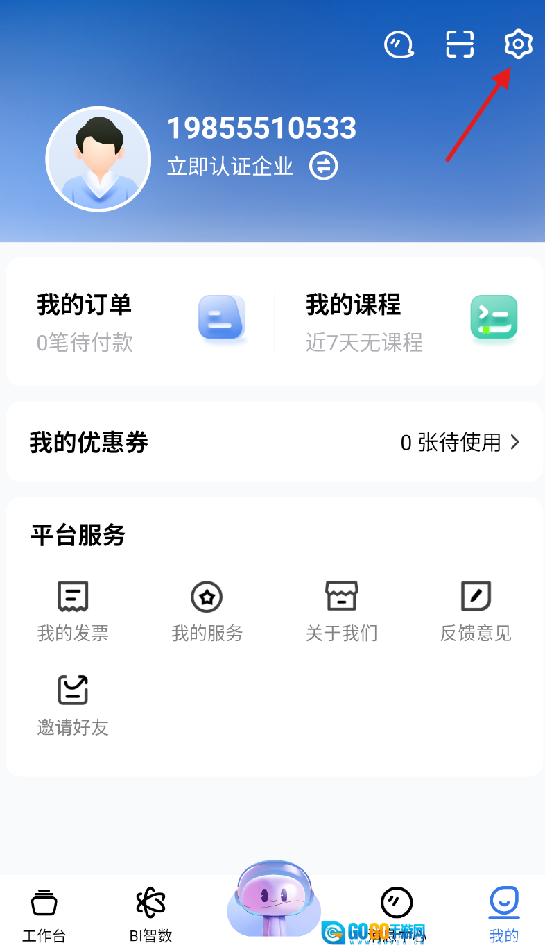 2、进入 “我的” 页面后,留意右上角位置,点击 “设置” 图标进入系统设置页面。