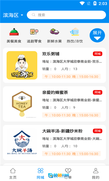 2、在衣食住行板块中查找所需服务,例如周边美食、生活服务等,点击即可在线下单体验。