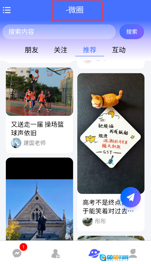 3、进入"社交圈"发布个人动态,浏览好友分享的内容并点赞评论互动。