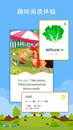 3、界面设计活泼生动,操作简单易上手。可优化语音朗读功能,提升发音自然度。