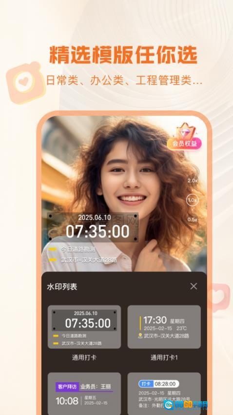2、行业定制模板库。覆盖工程巡检、房产中介、微商等12个职业场景,300+种专业水印模板,满足各类工作证明需求。