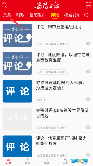 1、进入岳阳日报后,在首页顶部导航栏选择"今日头条"版块,这里推送最新热点新闻。