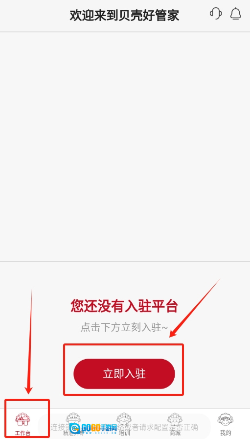 3、登录成功后,回到软件首页,一眼就能看到 “立即入驻” 按钮,点它就能开始下一步。