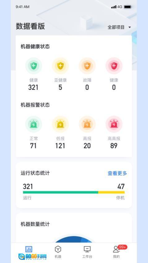 1、设备健康综合看板:可视化展示设备健康评分、运行时长、故障记录等核心数据指标,支持自定义看板布局。