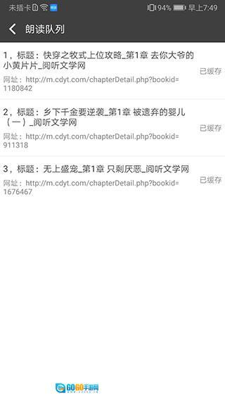 5、最后,您可以缓存多个听书文件并设置顺序朗读;这表示您能提前缓存感兴趣的书籍或文章,再按顺序播放朗读内容;如此一来,即便处于无网络环境,您依旧能享受听书的乐趣。