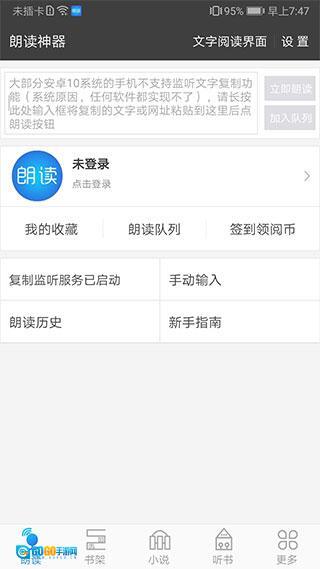 7、要是你平时爱阅读各类文章、浏览新闻或者看小说,却总担心长时间盯着屏幕会影响视力,或者本身视力状况就不太理想,那这款软件绝对是为你量身打造的——它能轻松实现小说朗读、新闻朗读、微信文字朗读以及公众号文章朗读,只需一键操作就能全部搞定,不妨赶紧来体验一下吧。