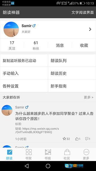 6、针对不识字或视力欠佳的人群,具备文字朗读功能;无论是微信内容、各类文章、新闻资讯还是小说读物,都能轻松朗读;尤其适合识字量少以及视力有障碍的用户使用。