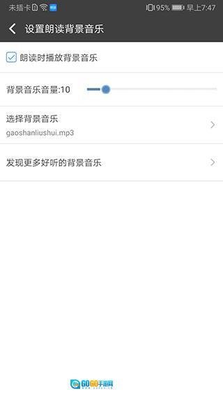 3、接下来,您可以对背景音乐进行设置;文字朗读神器配备了多种背景音乐选项,您可依据个人喜好挑选;另外,您还能调节音量大小,从而更好地契合您的听觉需求;