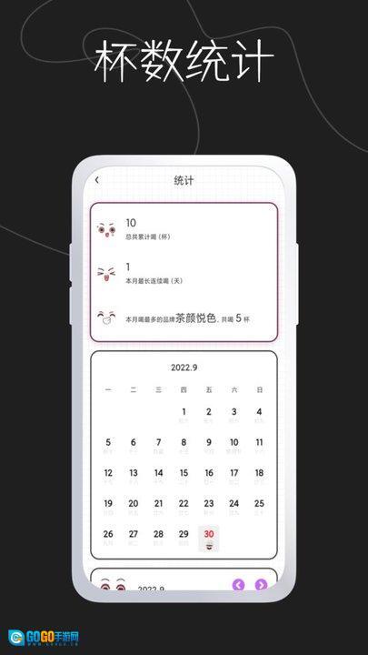 1、记录当日所喝奶茶的品牌,统计一周或一月的杯数,清晰梳理自己的奶茶饮用频率,洞察消费习惯。