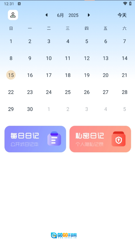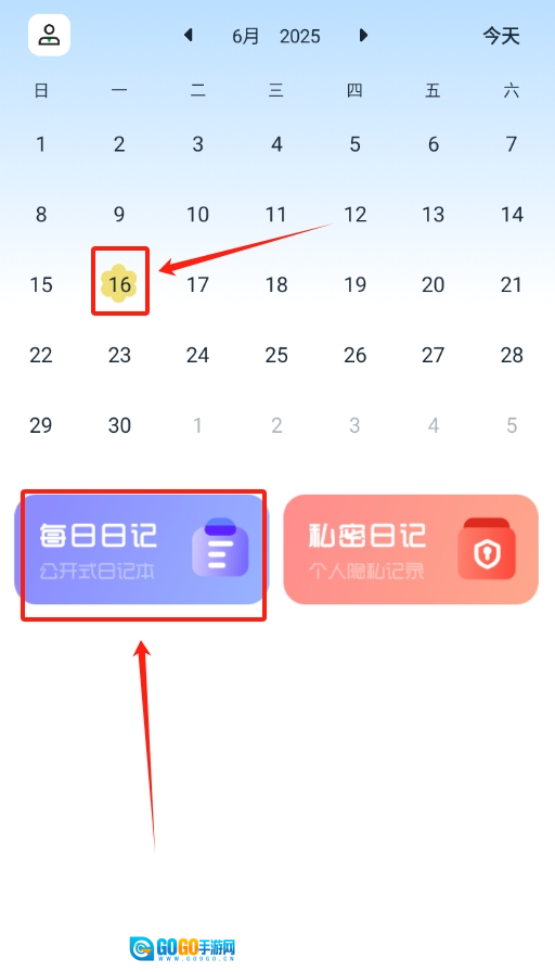 1、打开每日日记软件,在首页的日历上挑一天,直接点击 “每日日记” 准备记录。