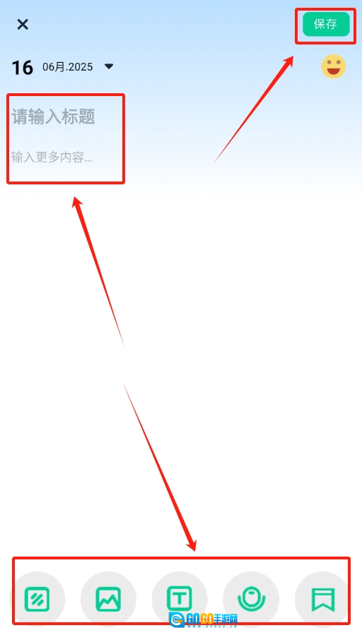 3、输入日记标题,再把想写的内容填进去,写完后点右上角的保存,就大功告成啦。