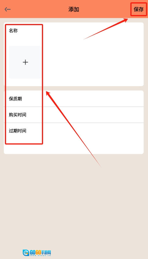 3、接着,在弹出的界面依次输入零食名称、上传照片,填好保质期、购买和过期时间,无误后点保存就行。