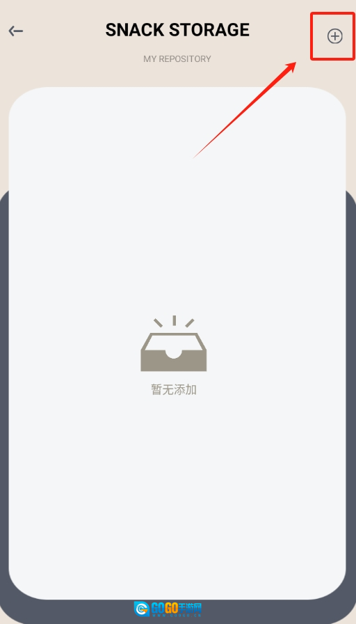 2、进入零食收纳页面后,在右上角能看到一个加号图标,点击这个加号,准备添加新物品。