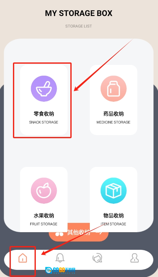 1、打开收拾我的行李箱啦软件,进入首页,找到零食收纳选项,点击它进入对应页面。