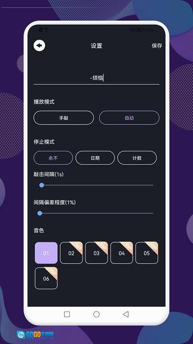 1、打开木鱼助手,在音效库中挑选一款你喜欢的木鱼音效,通过点击屏幕开始敲击,开启惬意的解压时光。