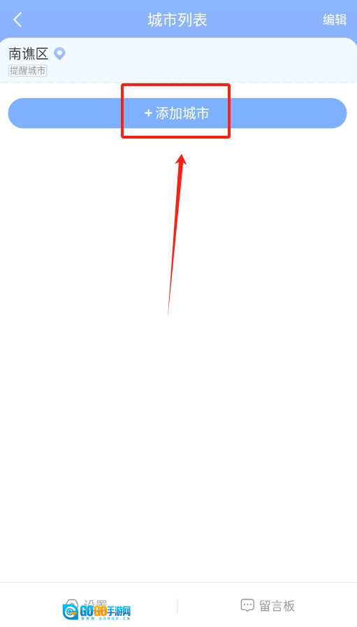 2、进入城市管理界面,通过手动输入或搜索功能添加其他城市,随时切换查看不同地区天气情况。