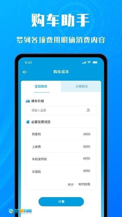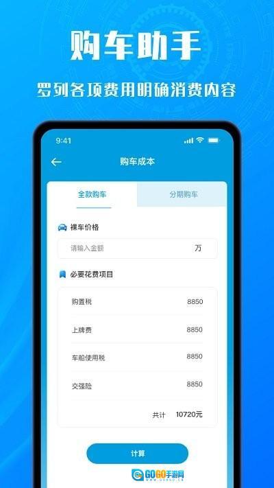 3、想计算购车成本,依次输入裸车价格、必要花费项目金额,全部填完点击计算就能出结果。